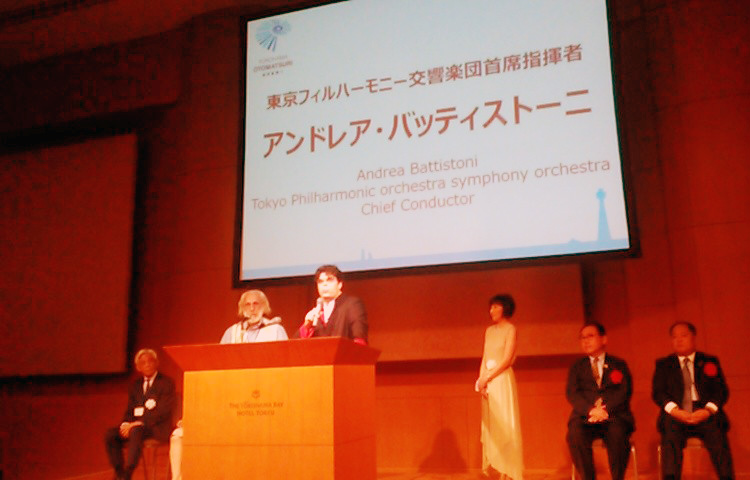 横浜アーツフェスティバル実行委員長の近藤誠一氏からは、子供時代に音楽に触れる大切さについてのお話があり、さらにイタリア出身で、東京フィルの首席指揮者であるバッティストー二氏からも、同様のお話がありました。