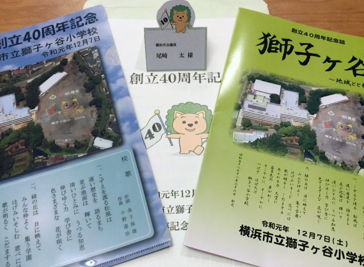 今日は地元・獅子ヶ谷小学校の創立40周年記念祝賀会に参加させて頂きました。