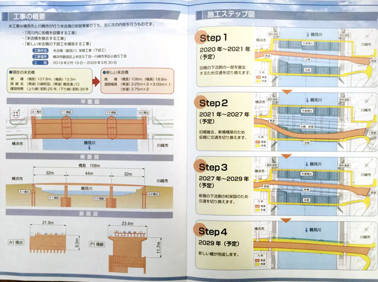 横浜市と川崎市を結ぶ環状2号線の入口部分にかかる末吉橋は、建設から60年以上が経過し、老朽化も進んでいる事から、架け替え工事がスタートしています。 地域の方々には長期間、ご迷惑をおかけすることになりますが、耐震性と交通渋滞の軽減につながる新しい末吉橋の完成に期待したいと思います。