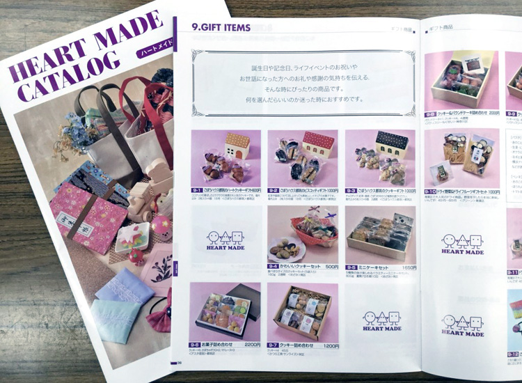 横浜市では地域作業所等に通いながら、障がいのある方々が作り上げた商品が「HEART MADEカタログ」として掲載されています。 お菓子や雑貨、革製品やギフト商品など、300種類以上の商品が用意されています。