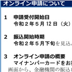 今のところ、郵送による申請書の送付は5月29日頃に、また振込は6月中旬の予定となっています。4月27日時点で住民基本台帳に記載のある方が対象ですが[...]