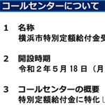 横浜市では、今日から特別定額給付金に関するコールセンターが開設されます。