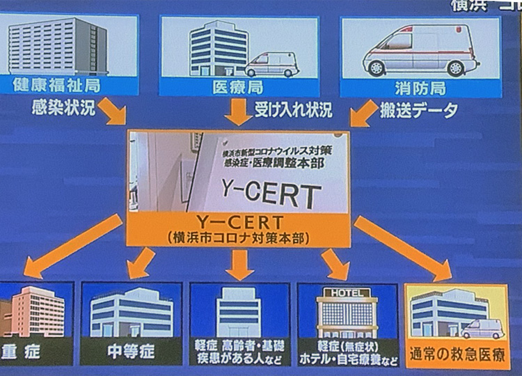 横浜市では、医療崩壊を防ぎ、市民を全面的に支援するため「感染症・医療調整本部Y-CERT(ワイサート)」が設置されています。