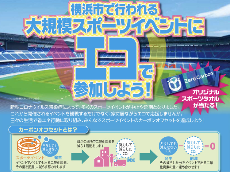 横浜市では「Zero Carbon Yokohama(ゼロ・カーボン・ヨコハマ)」を目指す取組のひとつとして、平成30年7月より、東京2020オリンピック・パラリンピックなどの大規模スポーツイベントにおける「横浜カーボンオフセットプロジェクト」に取り組んでいます。