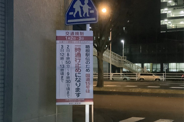 国道15号周辺の道路には、お馴染みの交通規制の立看板が設置されています。
