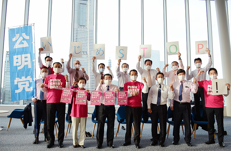 (本会議終了後は、ピンクシャツデーの記念撮影でした)