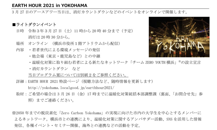 3月27日、20時30分から世界規模の環境キャンペーン「EARTH HOUR」がオンラインで開催されます。