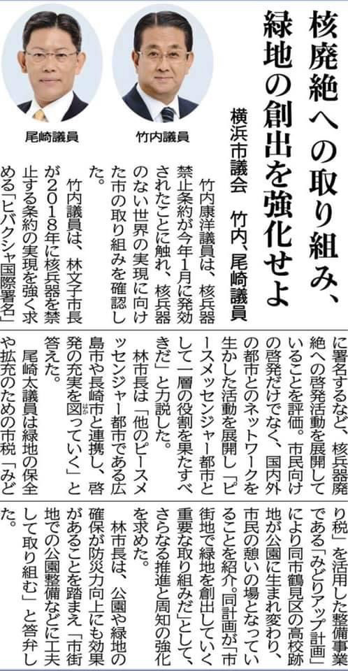市長からは、鶴見区をはじめ、緑の少ない市街地での緑地や公園の創出は、地域にとって大変貴重なものであり、様々な機会を捉え、みどりアップ事業や公園整備などに工夫しながら、潤いと魅力にあふれ、災害にも強い都市づくりを進めるとの議会答弁がありました。