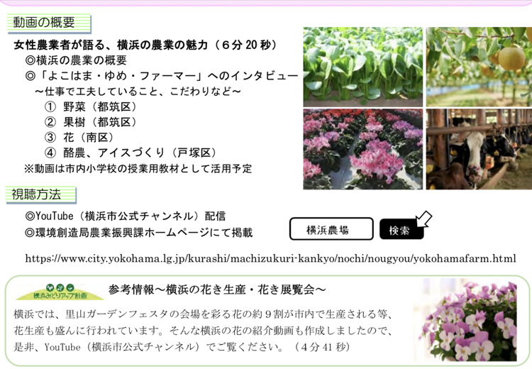今回、25周年を記念して動画が作成されましたので、身近にある横浜の農業の魅力を感じて頂ければと思います。
