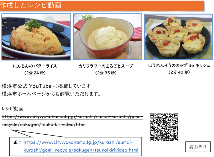 自宅で過ごす時間が増えていることから、家庭での食品ロス削減の参考としてレシピ動画が作成されています。
