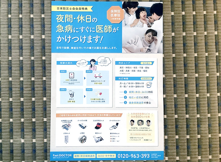 テレビなどで紹介されていた「ファストドクター」の案内を頂きました。