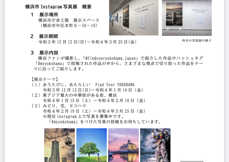横浜市では、公式 Instagram アカウントの「@findyouryokohama_japan」を通じて、横浜ファンが撮影した横浜の風景や、高揚感や感性が磨かれるような感覚が味わえる写真を国内外に向けて発信しています。