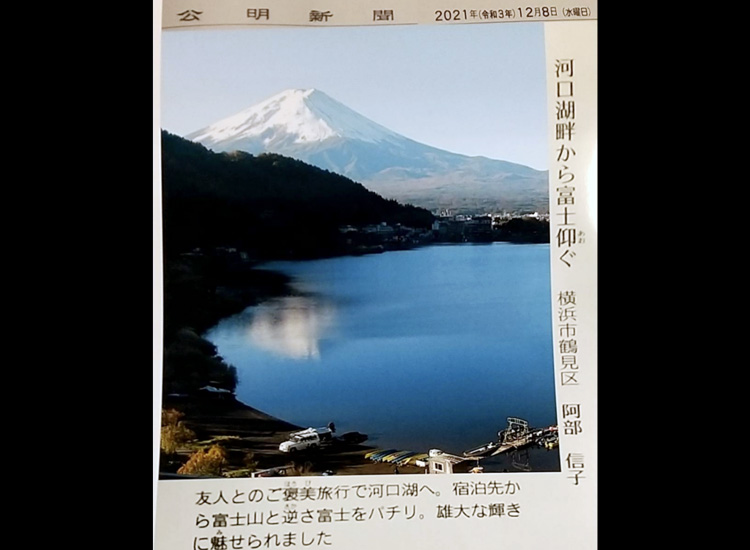 プロ顔負けの素晴らしい写真を、公明新聞に掲載頂きました。来月は芦ノ湖からの富士山が仰げることを楽しみにしています。