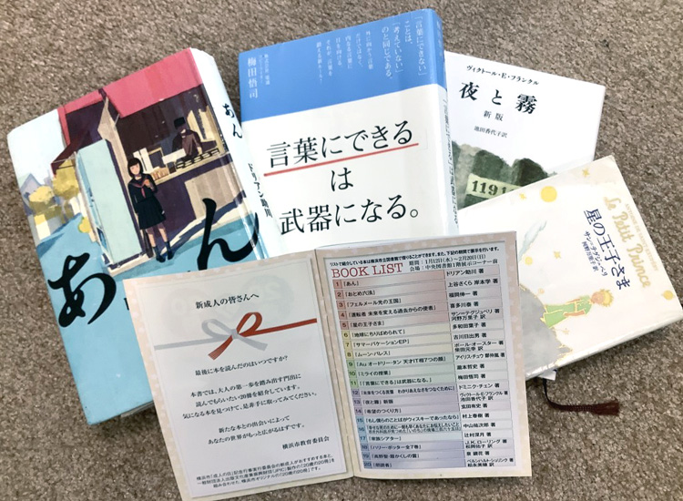 今回の横浜市の成人式で配布された記念冊子には、大人の第一歩を踏み出す門出に、読んでもらいたい20冊の書籍が紹介されています。これは成人の日記念行事実行委員会の皆さんが選んだ書籍となっています。これまで以上に工夫され、想いの詰まった記念冊子を読み、改めて読書に挑戦する気持ちになりました。