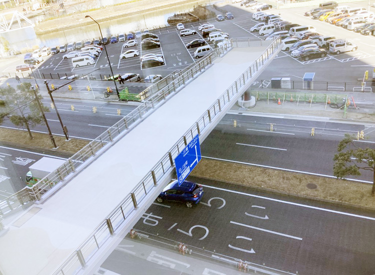 横浜市役所前に新たなデッキが整備され、公募により「北仲クロスデッキ」と命名されましたが、幅員は6mで、長さは40mと迫力があります。