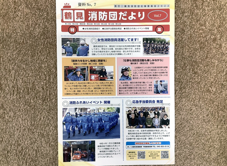 最新の「鶴見消防団だより」が届きました。今回は鶴見区内で100名にもおよぶ女性消防団の活躍が紹介されています。