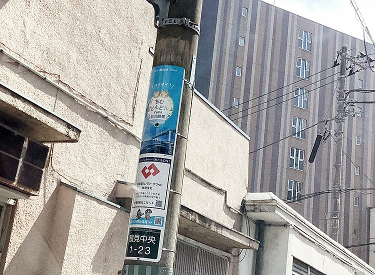 地域の活性化に向けて、官民学の連携により様々な事業が実施される予定です。その一つである東京電力とのコラボレーションによる「電柱広告」を発見する事ができました。(鶴見区内に5ヶ所設置中)