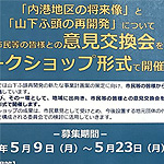 横浜市では山下ふ頭再開発の計画作成にあたり、幅広く意見募集を行っています。さらに各地域ごとにワークショップ形式の意見交換会も行われる