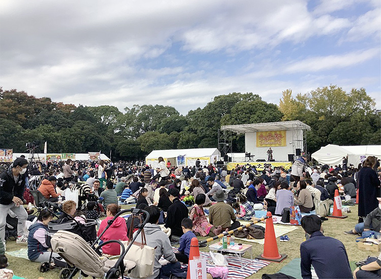 初日は晴天にも恵まれ、多くの来場者が持参したシートの上で、ゆったりとくつろぎながら、オリオンビールや泡盛をはじめ沖縄料理などを楽しんでおられます。