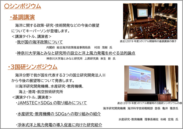 本コンベンションは、海洋産業に特化したイベントで、海洋に関連する大学、企業等のほか、海洋分野で我が国を代表する3つの国立研究開発法人が一堂に集う貴重な機会です。