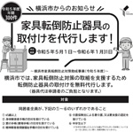 過去の大地震では、家具類の転倒により多くの方がお亡くなりになっています。横浜市では、自ら家具転倒防止対策を行うことが困難な世帯を対象 [...]