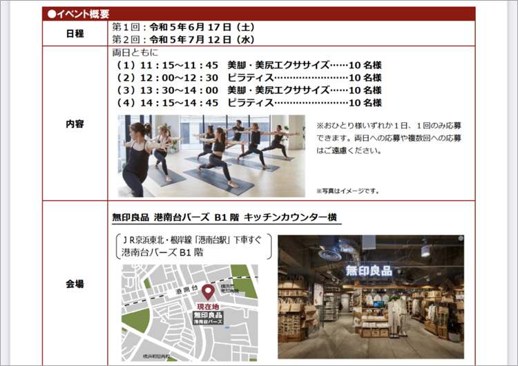 プロのインストラクターを迎え、利便性の良い商業施設内が会場となります。