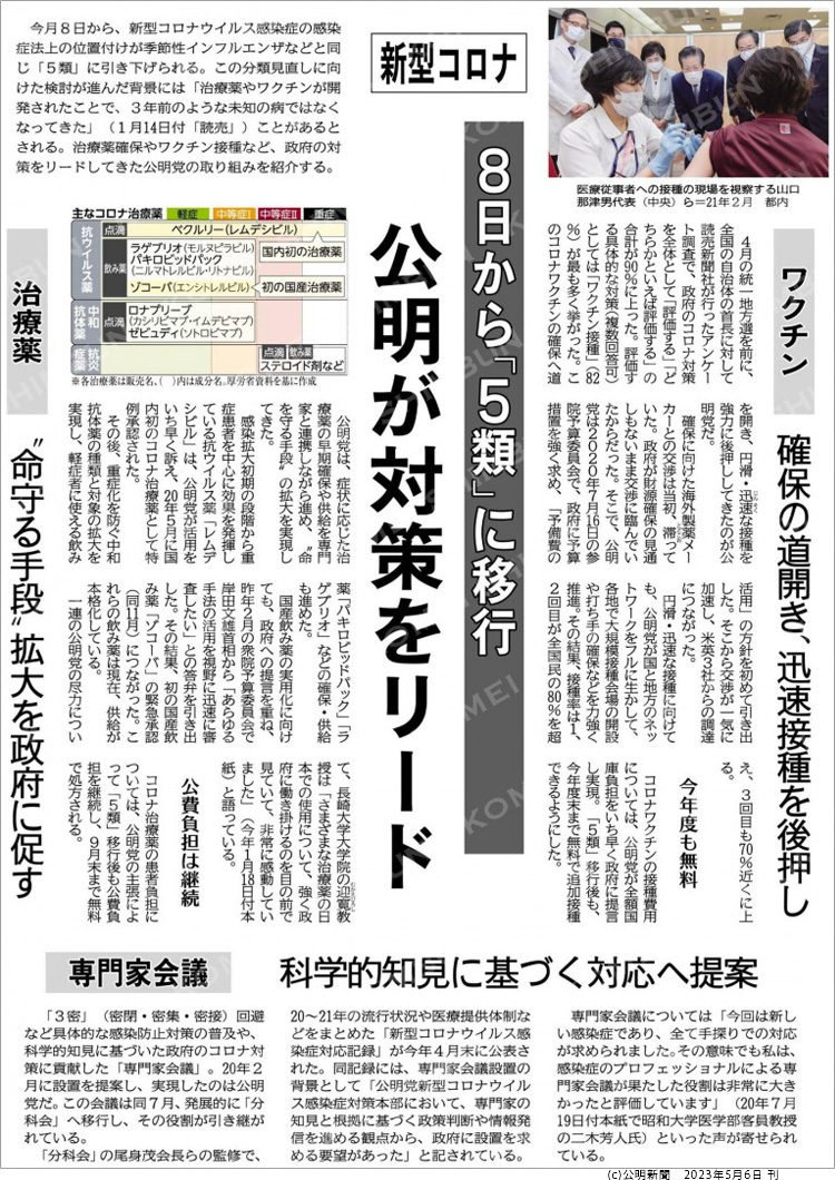 5類への移行後も、今年度まではコロナワクチンの接種費用は無料となり、コロナの高額治療薬も令和5年9月末まで無料となります。