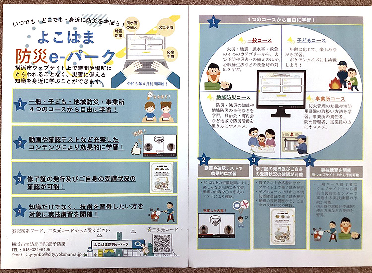 横浜市消防局では、ウェブサイトを通して防災について学ぶことのできる「防災e-パーク」を展開しています。