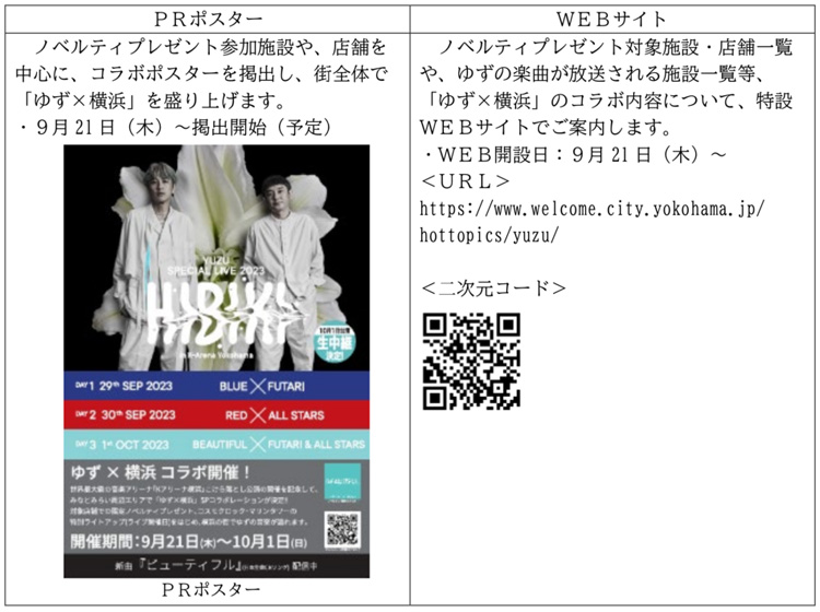 Kアリーナ横浜のこけら落とし公演(9月29日〜10月1日)には、横浜出身のゆずが登場します。それに合わせて、様々な「ゆず×横浜」のスペシャルコラボレーションが予定されています。