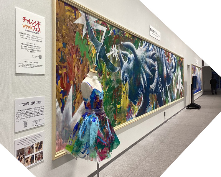 横浜市では12月3日から9日までの障害者週間に合わせて、障害者理解や普及啓発を目的とした「チャレンジドweekフェス in Yokohama2023」が開催されています。12月9日のステージイベントに先立ち、市役所の1階と2階では作品展示が行われており、巨大壁画アートは一見の価値ありです。