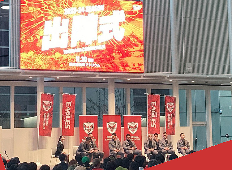 今日からリーグワンが開幕となりますが、それに先立って横浜市役所では横浜キヤノンイーグルスの出陣式が行われました。