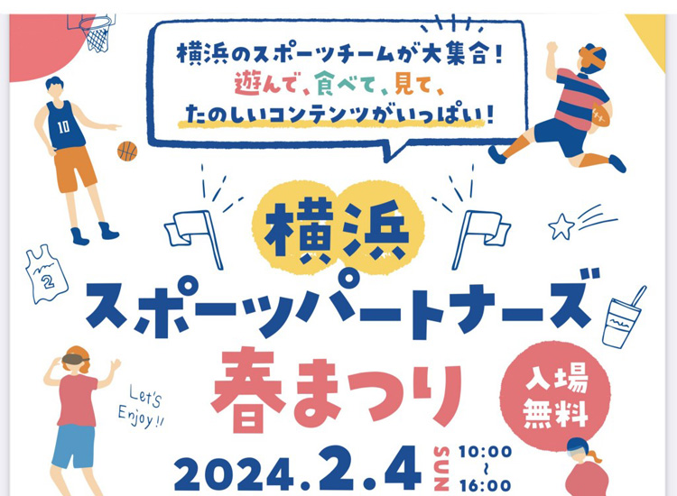 来る2月4日、横浜市役所では「横浜スポーツパートナーズ 春まつり」が開催されます。横浜市を本拠地とするトップスポーツチーム(横浜スポーツパートナーズ)による体験ブースやチアリーディングパフォーマンスの他、キッチンカー等も登場予定です。
