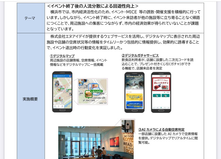 横浜市ではDX推進の取組として、行政サービスの課題と民間企業等が持つデジタル技術をマッチングする「YOKOHAMA Hack!」を運営しています。このたび、令和5年7月より開始したイベント終了時の回遊性向上の実証実験報告がありました。