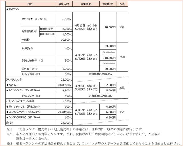 各種目を合わせて、合計28200人のランナーを募集します。