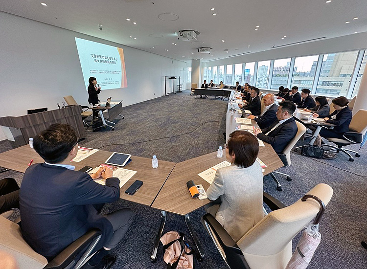 減災と男女共同参画研修推進センターの共同代表である浅野幸子氏から「災害対策の質を左右する男女行動参画の視点」とのレクチャーを受けました。