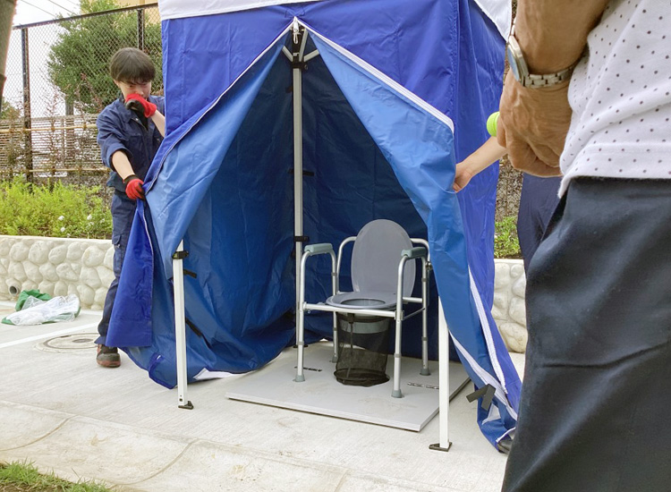 来月に開園予定の「北寺尾6丁目サムエル公園」に設置された災害用トイレ及びかまどベンチのデモストレーションが行われました。災害対策の機能を備えた街区公園として整備されたものですが、地域の安心につながると思います。