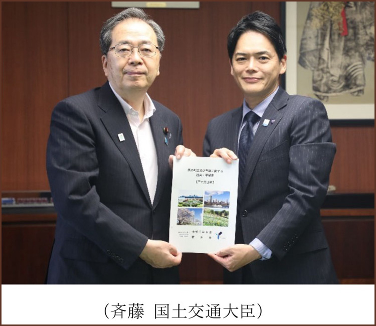横浜市長は国土交通省に対して、防災対策ならびに国際園芸博覧会開催に向けた協力・支援に関する要望活動を行いました。斉藤国土交通大臣からは「九都県市首脳会議の要望を参考にしながら、防災対策を進めていきたい。GREEN×EXPO2027については、国土交通省も主体者として、しっかり準備を進めていきたい」とのコメントがありました。