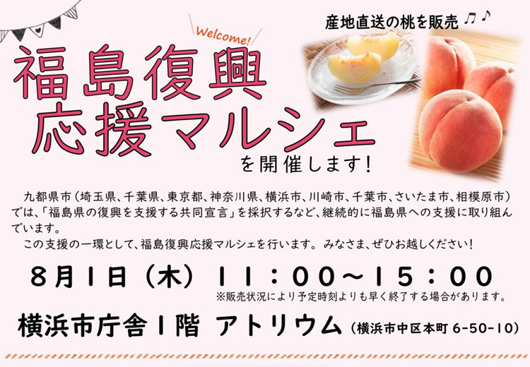 この取組の一環として、横浜市庁舎では福島復興応援マルシェが開催されます。