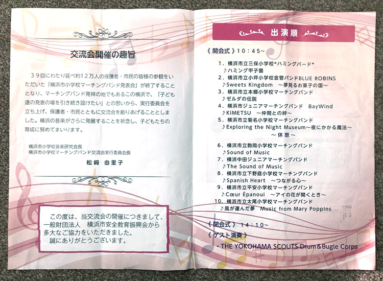 第2回横浜市小学校マーチングバンド交流会に参加させて頂きました。