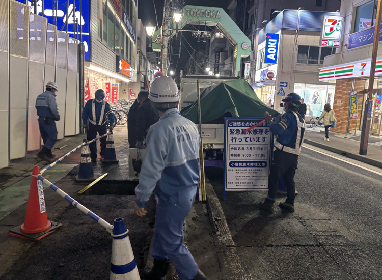 鶴見駅周辺で発生した漏水への緊急工事が行われていました。