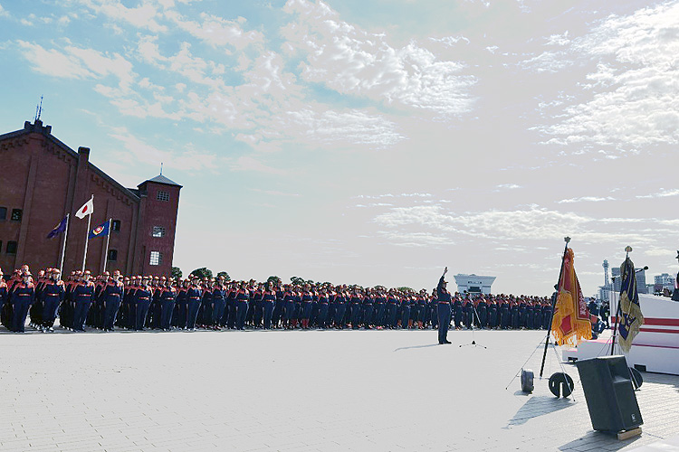 晴天にも恵まれ、第26回全国女性消防操法大会が、横浜赤レンガ倉庫で盛大に開催されました。北海道や沖縄など全国の消防隊が参加され、熱い戦いが展開されました。毎回上位入賞している九州勢の中で、熊本県八千代市の3連覇が期待されましたが、今回は千葉県代表が全国制覇されました。