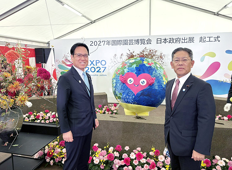 2027年国際園芸博覧会日本政府出展起工式が、総理ならびに関係大臣の出席のもと、政府出展エリアで開催されました。 「日本の自然観を再考し、未来へ進む」とのコンセプトによる展示等の準備が進められます。