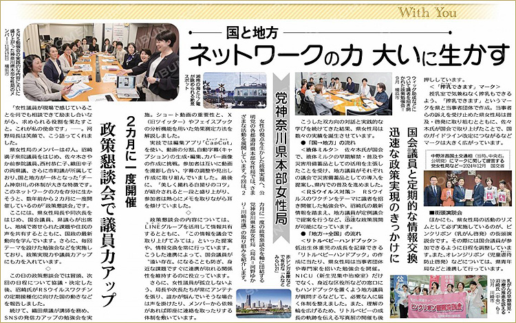公明党神奈川県本部では、その主旨を体現すべく、県内各地で多くの女性議員の活躍が光っています。