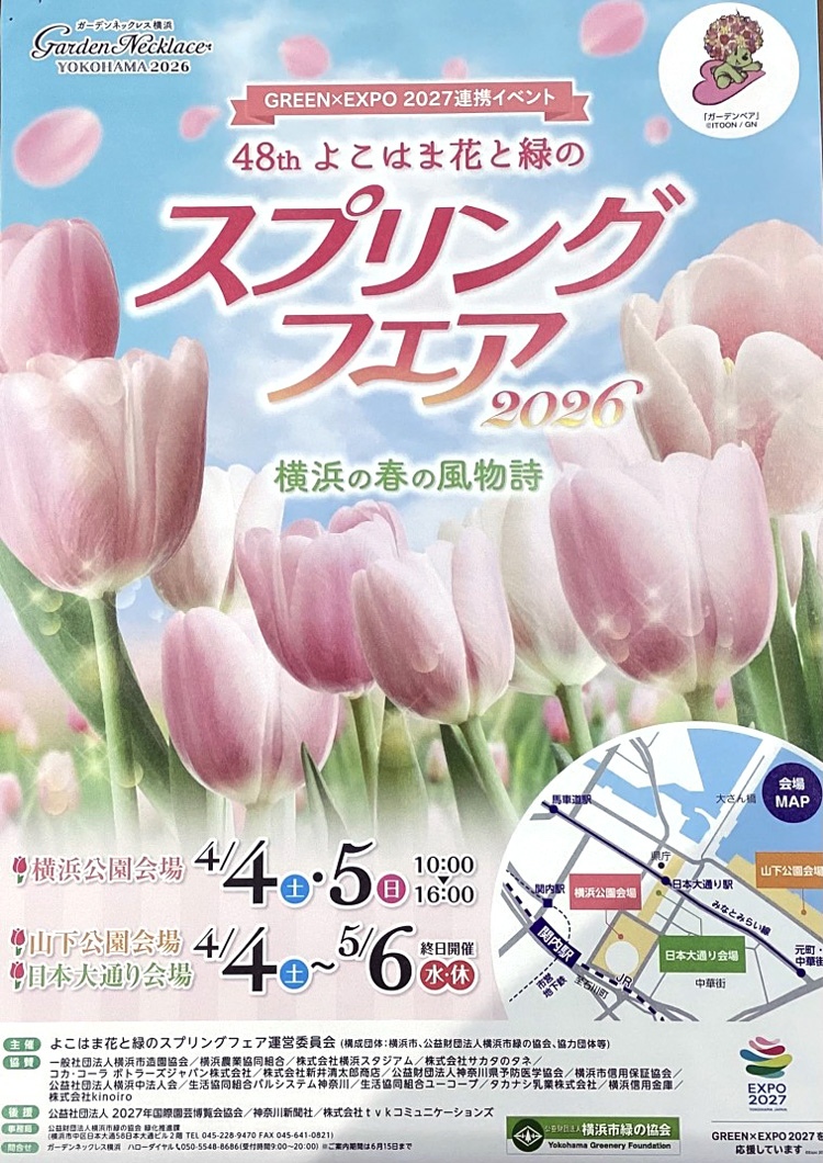 令和8年4月4日〜5月6日まで、横浜の春の風物詩「よこはま花と緑のスプリングフェア」が開催されます。