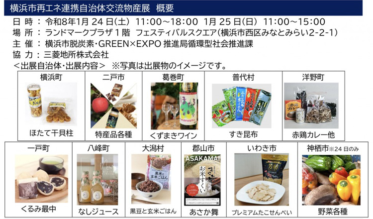 このたび連携協定を結ぶ自治体との交流物産展を横浜ランドマークタワーで開催します。